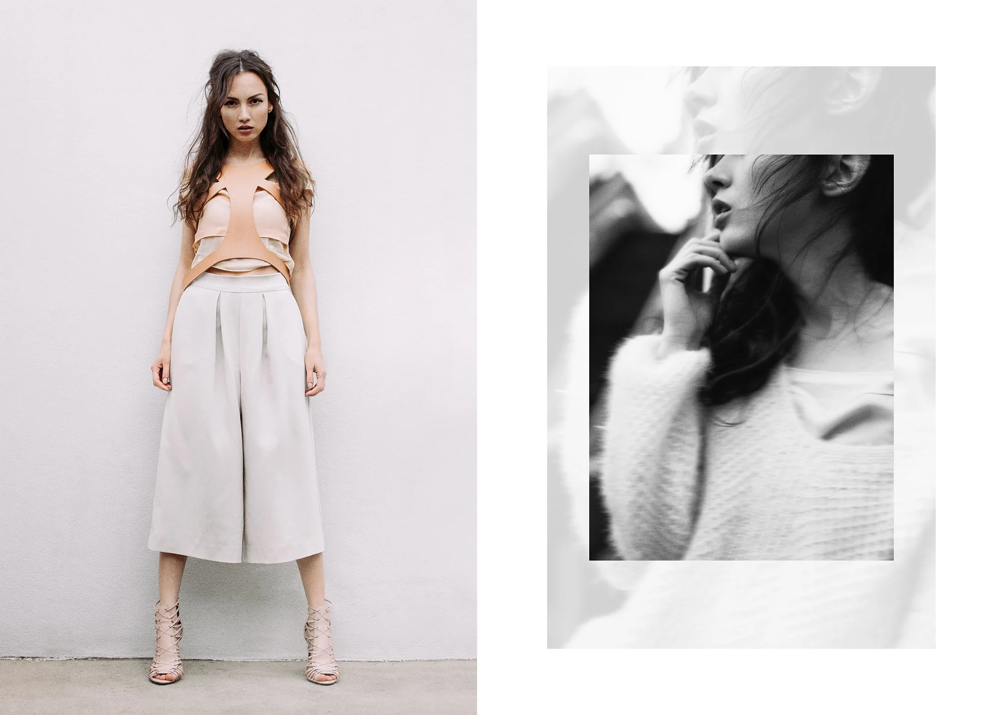 The designer has come from Cologne with her collection "Degree of terrible", which was inspired by the life of Frida Kahlo. The peaces of leader are combinated with the light materials. The location completes the pastel colors of clothes.
